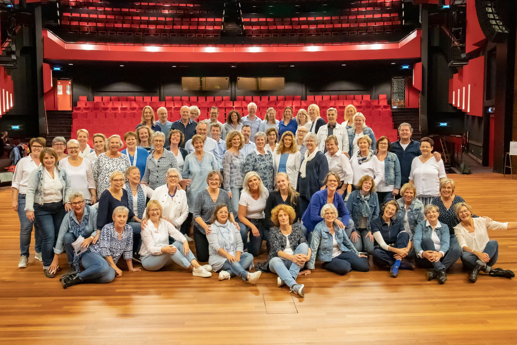 Inmiddels, 40 jaar later, zijn we uitgegroeid tot een koor van zo’n vijftig leden, met een eigen zevenkoppige band en een dirigent. We zingen Nederlands- en Engelstalig: bekende, moderne popliedjes en natuurlijk passeren ook de klassiekers de revue. We gaan voor kwaliteit, maar we willen er ook vooral plezier in hebben en enthousiast worden van het samen zingen. We treden regelmatig op en maken die optredens tot een echte show, met matchende kleren en hier en daar een danspasje.